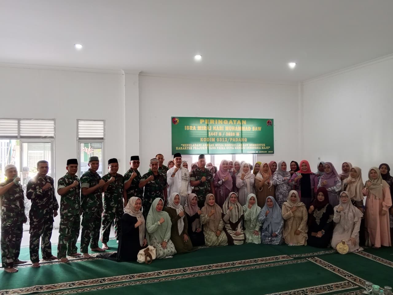 PADANG | Kodim 0312/Padang, bersama Persit KCK Cab LXVI dim 0312 melaksanakan kegiatan peringatan Isra Mi’raj Nabi Muhammad SAW 1447 Hijriah/2026 Masehi yang digelar di Musolah Makodim, Jl. Mh. Thamrin No.5, Kecamatan Padang Selatan, Kamis (22/01/26).