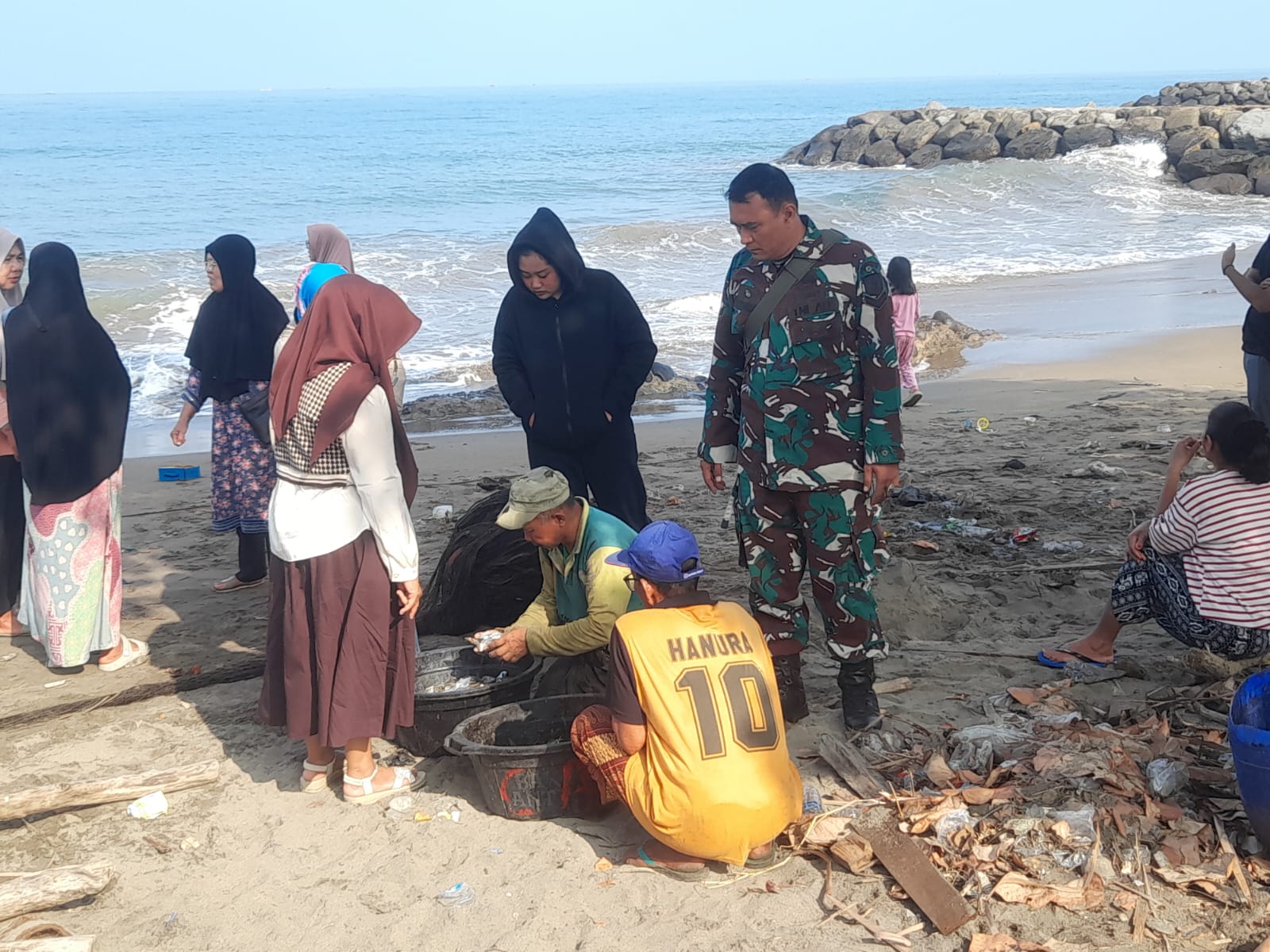 Tidak jarang dalam kesempatan seperti ini, Babinsa juga memberikan imbauan kepada masyarakat agar tetap menjaga kebersihan pantai serta menjaga kebersamaan dalam menjalankan aktivitas nelayan secara bergotong royong.